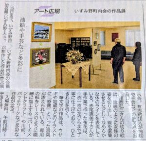 自治会館にて、会員の方の作品を展示する「いずみ野文化展」を開催しました。新聞にも掲載されました。