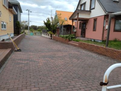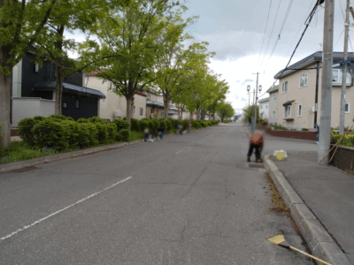 自分の家ではなく、メインストリートのインターロッキングの隙間の雑草を、腰を屈めての作業にたくさんの方が参加下さいました!